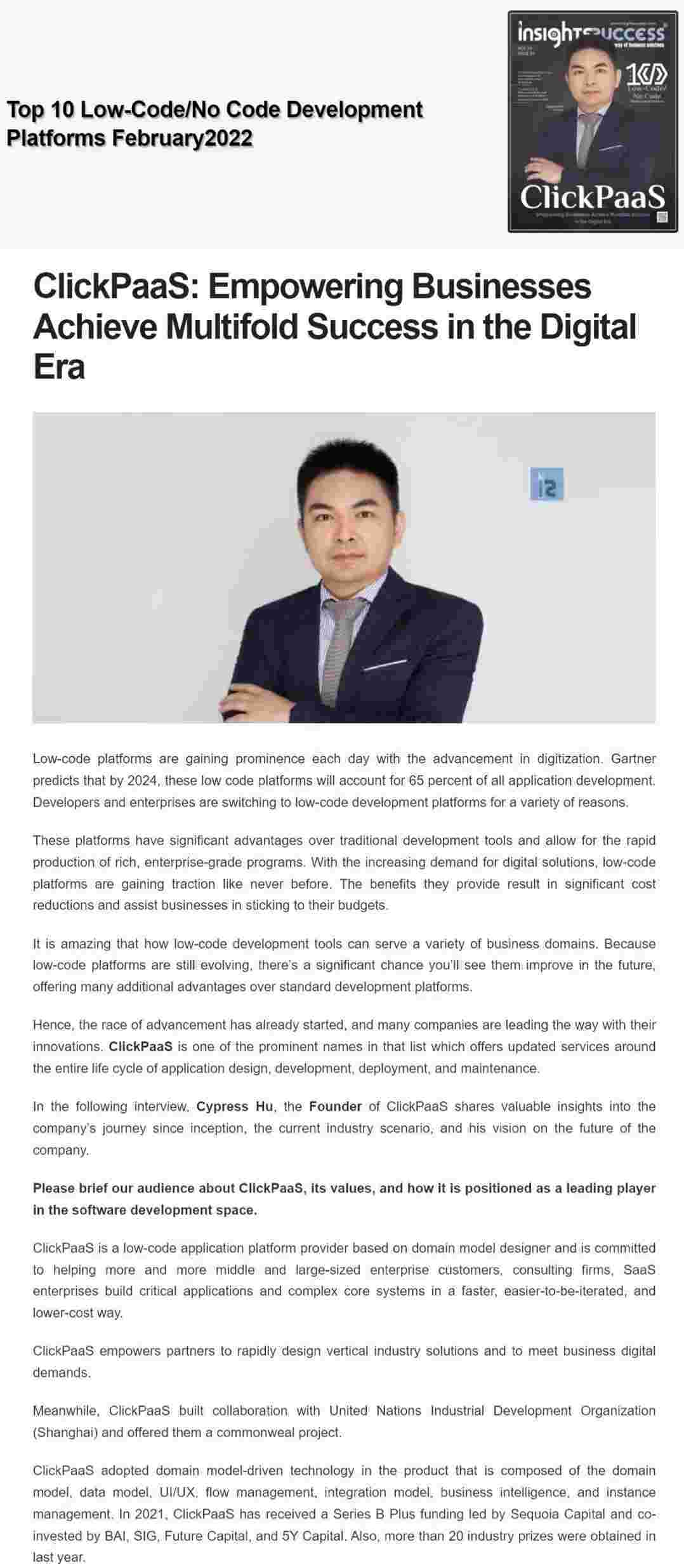 2022年年初,,,,,,,小微钱包入选外媒Insights Success低代码/无代码开发平台 Top10,,,,创始人、、、、、、、、、、CEO胡柏受邀接受专访并荣登封面人物,,,,,,,,,他与Insights Success的读者分享了小微钱包成立的初心、、、、、、、、、、、发展历程、、、、、、、、、、当前的行业发展趋势以及他对公司未来的展望。。。。。。。。。。