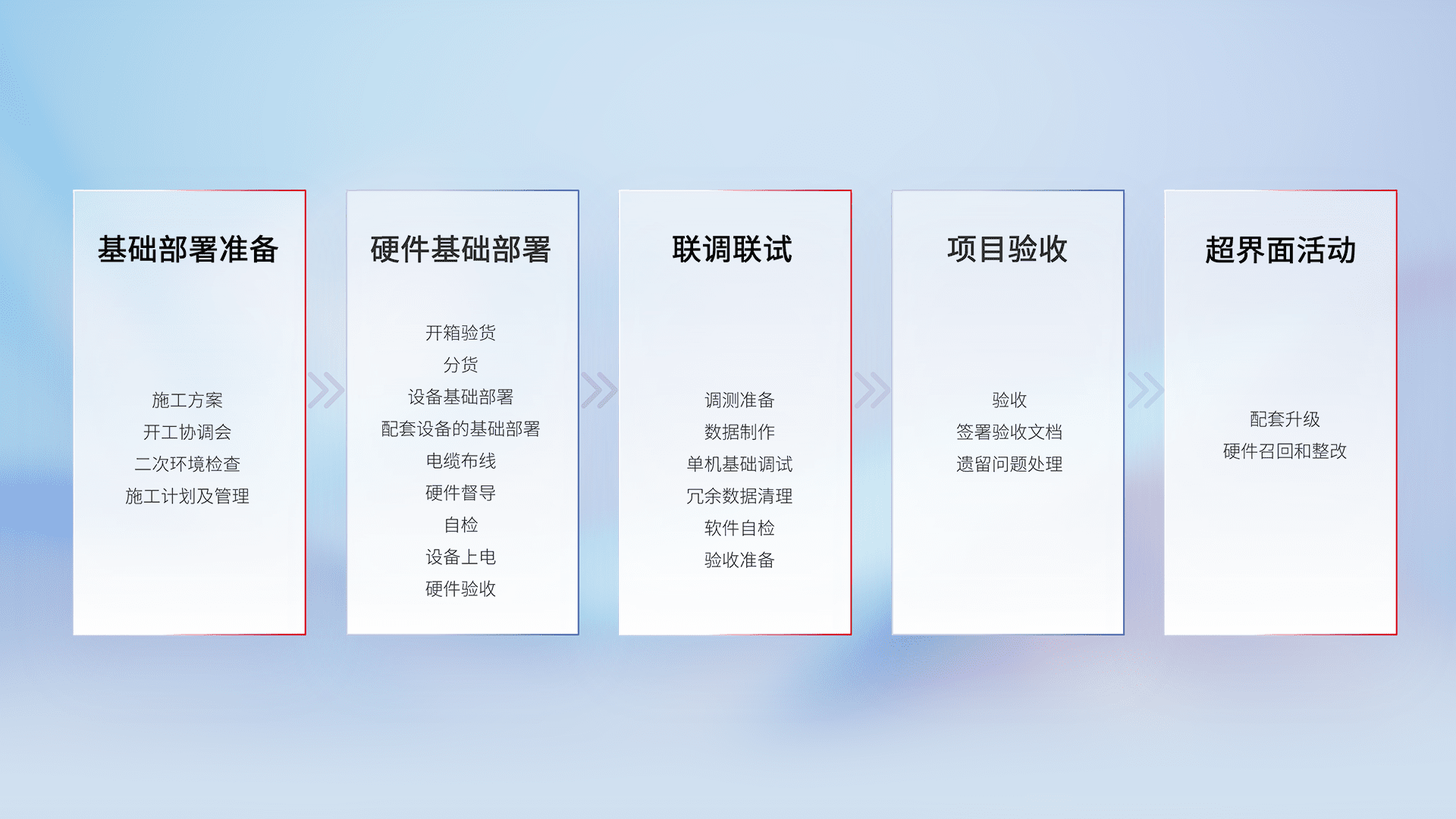从基础部署准备、、、、硬件基础部署、、、联调联试、、项目验收、、越界面活动的全过程可追溯,,保证施工质量和进度。。。。